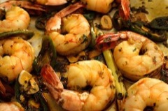 Put 48ml of soy sauce, 2 cloves of sliced garlic, 2 sliced red peppers, 40g coriander, 40ml of lemon juice, 20ml of olive oil, 20g of sugar and sliced lemongrass in a bowl and mix them. Marinade the 12 shrimps without digestive tracts. Stir them well and make the marinade cover the shrimps. Marinade the shrimps at room temperatures for 10 minutes. Heat 20ml of olive oil in a frying pan over high heat for 3 minutes, add the shrimps and fry for 3 minutes until bright pink appears. Turn off the heat. Slowly pour 80 ml of vodka. Turn on the heat and cook the shrimp for one minute.